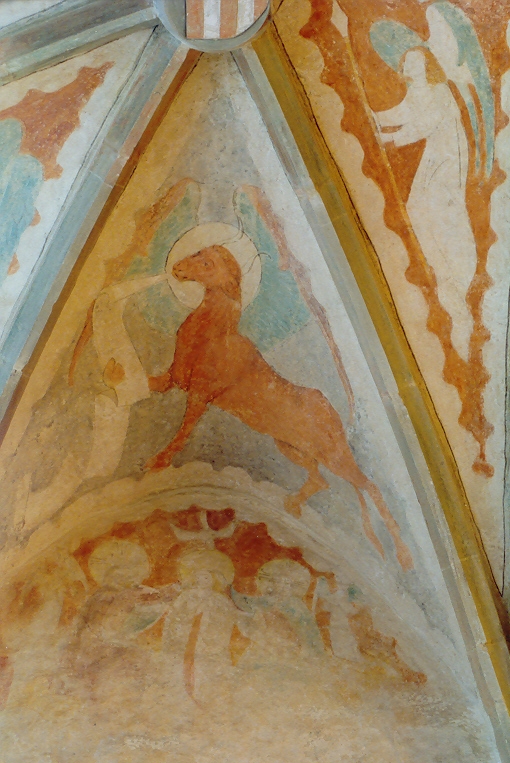 Über dem Ausgang zum Alter ist das Haupt Christi mit Engeln zu seinen Seiten gemalt.