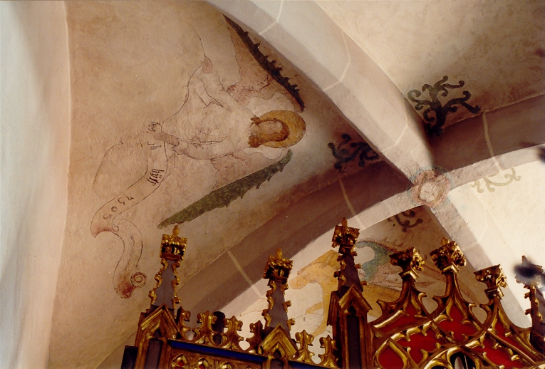 (In der übrigen Kirche ist von 1564 an den Wänden architektonische Renaissancemalerei mit prallbusigen Nixen dargestellt.)