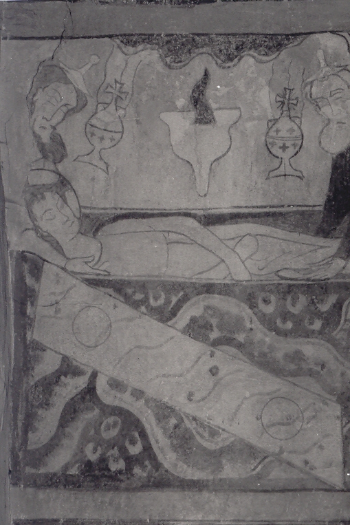 Auf der südlichen Mauer in einer Nische ist die Auferstehung Christi dargestellt. Zwei Stifter knien zu beiden Seiten der Szene.