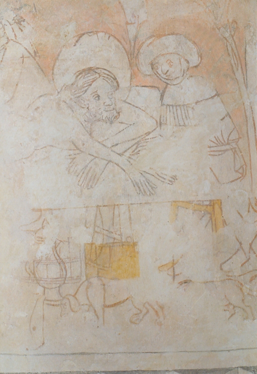 An der Nordwand des Schiffes wurde im 16. Jahrhundert eine Schutzmantelmadonna gemalt. Das Bild ist erheblich beschädigt, aber das Kind auf dem Arm der gekrönten Muttergottes, die Schutzsuchenden und ein Engel, der die linke Mantelhälfte hält, sind noch sichtbar.