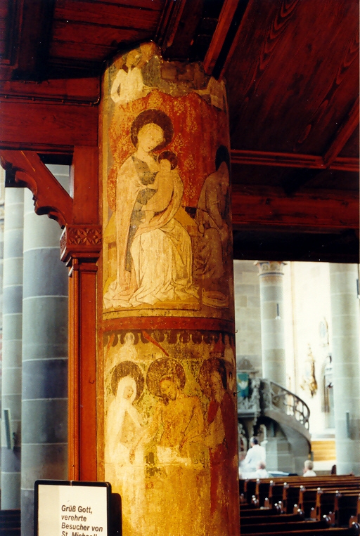 In einer großen Wandnische an der Südseite des Langhauses ist aus der Zeit um 1450 ein Votivbild erhalten. Es zeigt Ulrich und Werner von Schienen mit ihren Familienangehörigen in Anbetung der Muttergottes und des Kindes. Schriftbänder und Wappen umgeben die Betenden.