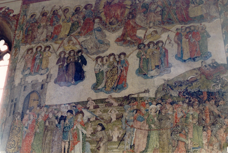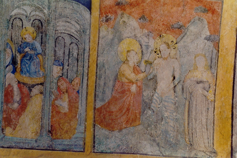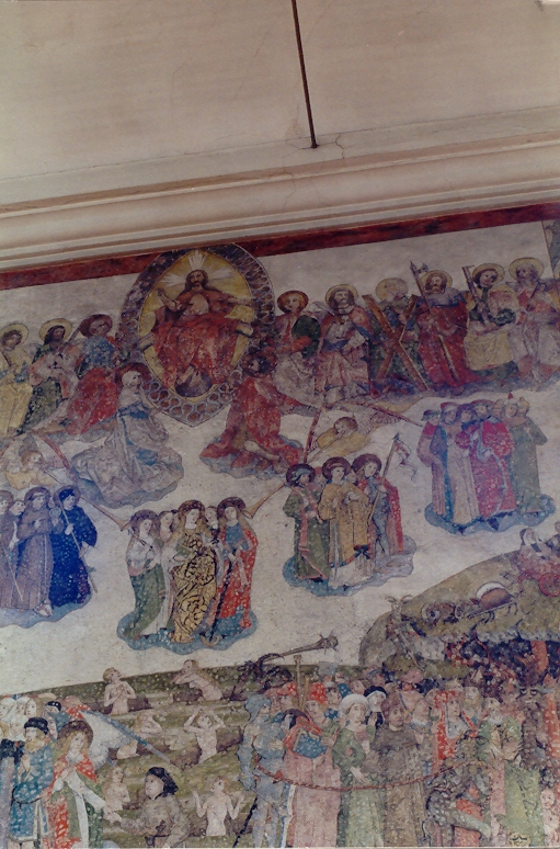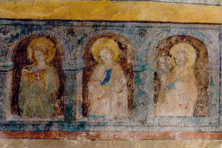 III) 15. Jahrhundert: Im Chorbogen sind die Büsten der fünf klugen und fünf törichten Jungfrauen zu sehen. Im oberen Bogenfeld ist die Verkündigung, darunter links die Geburt Christi, rechts die Heimsuchung wiedergegeben.